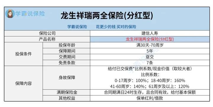 - 2023建信龙生祥瑞两全保险(分红型)保障哪些方面,投保前注意什么? 一、建信龙生祥瑞两全保险(分红型)保障哪些方面? 03-17